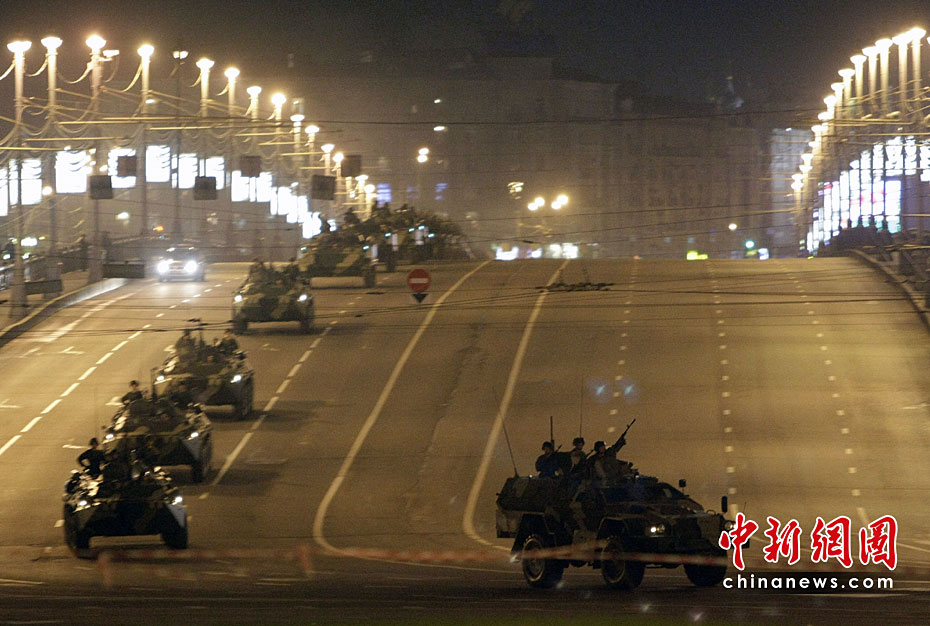 此次紅場閱兵包括兩部分內容:歷史部分和現代部分。歷史部分由身穿衛國戰爭時期軍服的士兵在鵝卵石道上進行,同時還會有9輛T-34坦克和8輛SU-100自行火炮。現代部分由13輛老虎裝甲車、BTR-80裝甲車、BMP-3步兵戰車、T-90A坦克和S-400防空系統等。圖片來源:中國新聞網