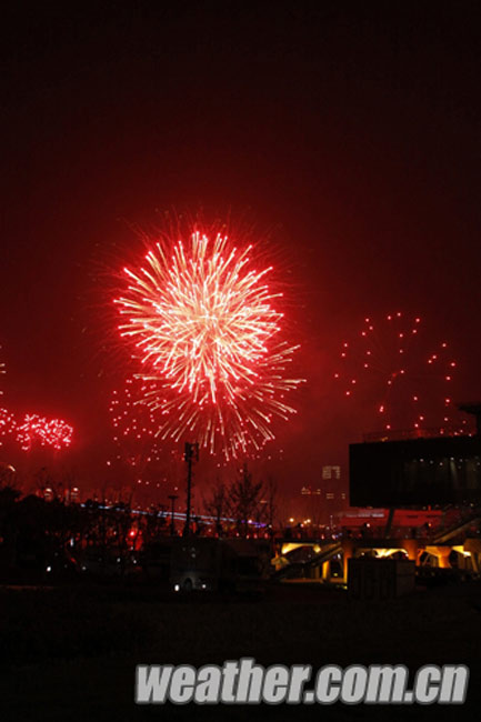 2010年4月27日,上海世博會開幕式彩排順利進(jìn)行。圖為美麗的煙花。卞赟 攝