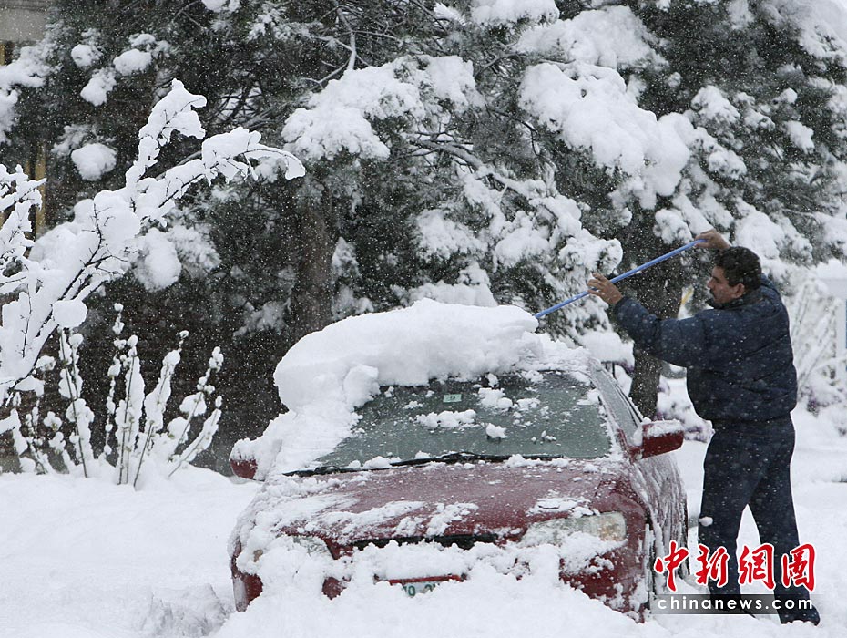 當(dāng)?shù)貢r(shí)間4月28日,美國(guó)佛蒙特州部分地區(qū)遭大雪襲擊。這場(chǎng)大雪給人們的出行帶來(lái)不便。圖片來(lái)源:中國(guó)新聞網(wǎng)