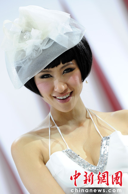 “第十一屆北京國際車展”是名車新品搶先亮相的舞臺,也成了車模們爭奇斗艷的場所,參觀者在車展中可以享受兩道視覺大餐。中新網(wǎng)記者 金碩 攝