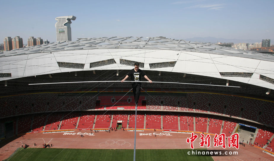 新疆高空王子鳥巢挑戰高空走鋼絲