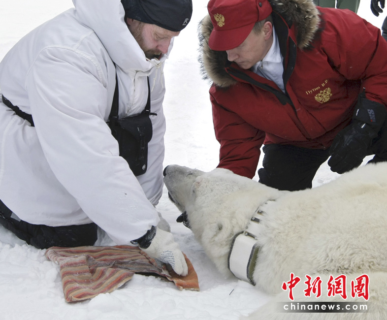 4月29日,俄羅斯總理普京參觀亞歷山大地島(法蘭士約瑟夫地群島)。 普京還與在研究學(xué)者一同給通過專門的陷阱捕獲的北極熊戴上衛(wèi)星定位項圈。此外,學(xué)者們還與普京一起給北極熊進(jìn)行測量和秤體重,
