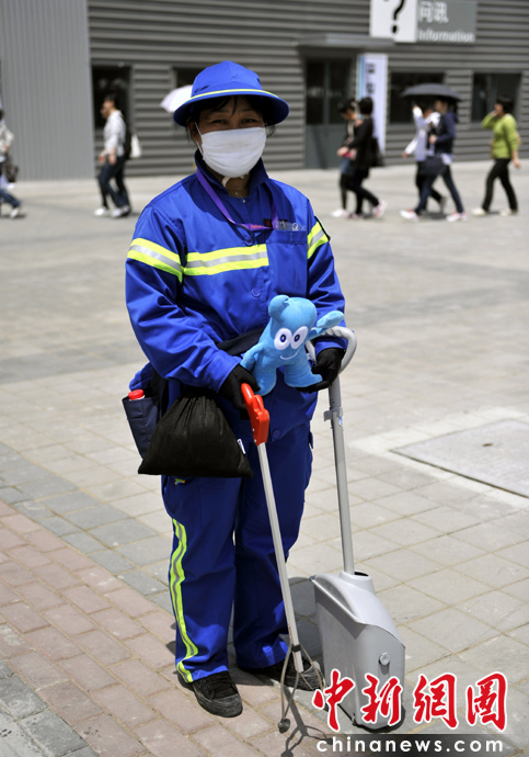 聽說是從北京來的記者,王大姐非常配合地滿足了我們的要求,與海寶照了合影,不過一再說自己不上相,照起來不好看。王大姐告訴記者,在世博園區里工作是早晚班輪換上的,早班從早上4點到下午2點,晚班從下午2點到夜里12點,工作還是比較辛苦的。“期待世博會能夠圓滿成功。”表達完對世博會的祝福后,王大姐匆匆離開,回到了工作崗位。