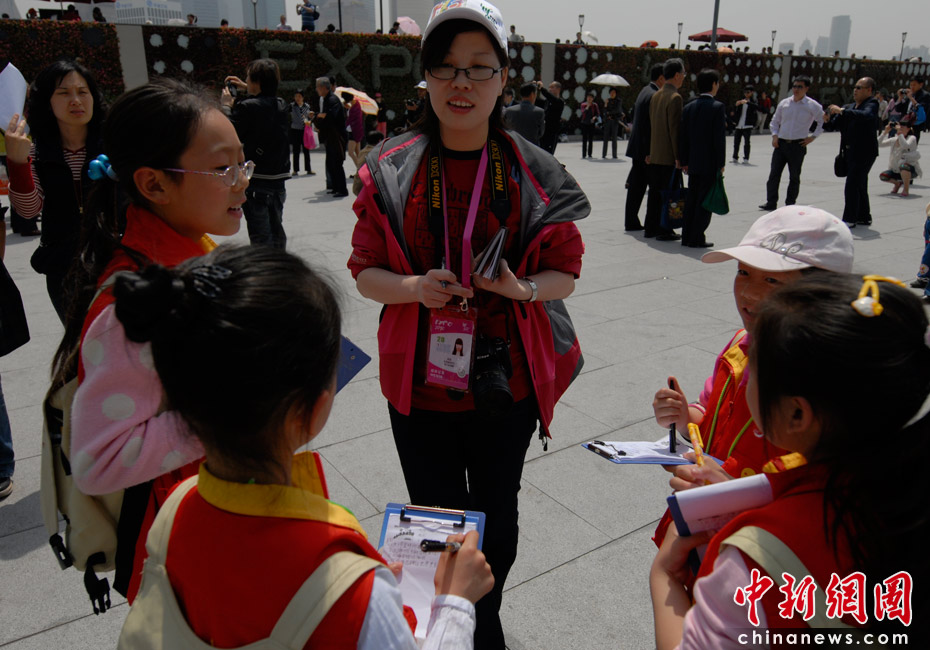 30日上午,記者在上海外灘采訪時遇到小主人報新聞學校的“小記者”們在采訪,成為他們今天的第一個采訪對象。“小記者”們最關心的問題是關于世博會,“如何讓世界變得更美好”。她們都表示非常想去看世博會,最想看的是中國館,但是要留到最后看,“因為其它館都會拆掉,中國館會保留下來”。“小記者”們說,自己要從身邊小事做起,做有文明有素質的人,并表示希望自己將來成為真正的“大記者”,更好地報道上海。吳歆/文 王紅綱/圖