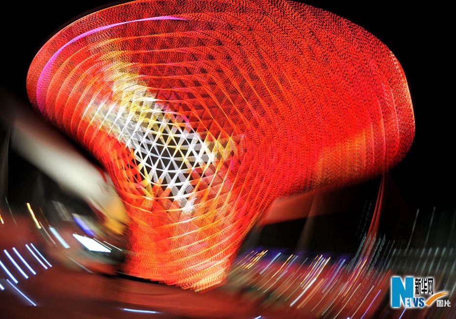 夜色下的世博園,迷離而夢幻。圖為世博軸陽光谷。圖片來源:新華網 郭毅攝