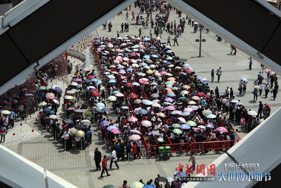 5月1日,上海世博會正式開園,當日有20萬人次的游客參觀了世博園。世博首日,許許多多的小細節都帶給人一種全新的體驗。圖為上海世博會開園首日游人如潮,各個國家館外都排起了等候參觀的長隊。中新社發 湯彥俊 攝