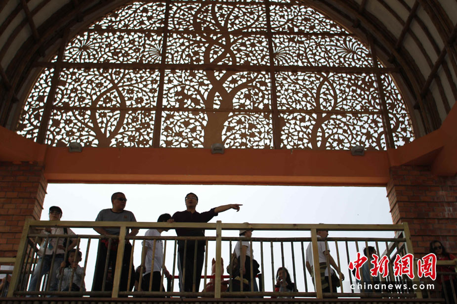 5月2日,觀眾在上海世博會印度館參觀。電影《阿凡達》中神秘的“生命之樹”在印度館現身,拱形大門上鑲嵌著銅質的“生命之樹”圖案,中新社發 蘇丹 攝