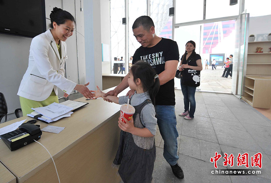 5月2日清晨,7歲的林姝彤小朋友剛跟著伯伯嬸嬸進入上海世博園,就在亂哄哄的人流中走丟了,志愿者把她領到走失兒童認領處。服務小姐在詢問她的姓名等關鍵詞之后,會立即廣播尋人啟示。結果,她很快就和親人團圓了。中新社記者 賈國榮 攝