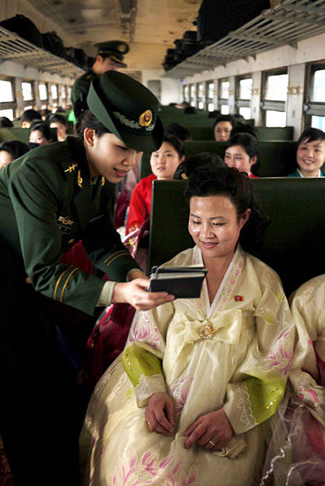 5月2日,載著198名朝鮮紅樓夢劇組演員的專列駛入丹東口岸。由朝鮮國家級藝術團-血海歌劇團創作的歌舞劇《紅樓夢》將于5月6日至9日登陸北京電視臺大劇院,這個超大演員陣容亦創下近年來華國外演出人數之最。圖片來源:新華網