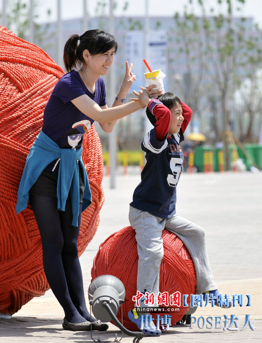 逛世博一定會拍照留念,擺一個漂亮有創(chuàng)意的pose尤為重要。面對著鏡頭,挺胸收腹翹臀,一個微笑,一個手勢,秀出自己的活力。心中一定要默念:“我留下的不是照片,是心情!”圖為一對母子擺出的愛心pose。中新網(wǎng)記者 王紅綱 攝