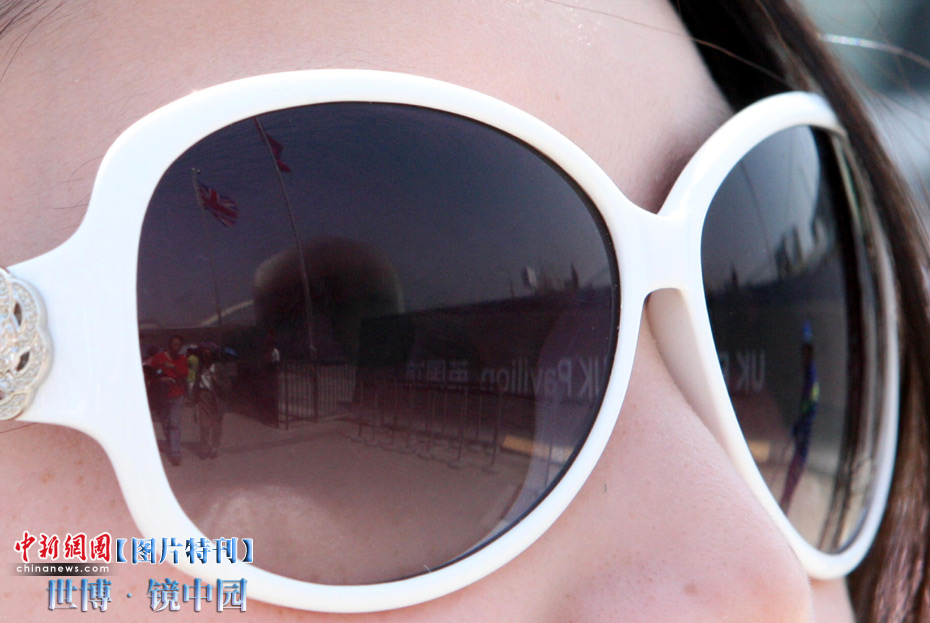 世博園開園3天,天氣一直晴熱,不少游客帶起墨鏡來遮擋刺目的陽光,從鏡片的折射中看世博園,別有一番趣味。中新社記者 湯彥俊攝