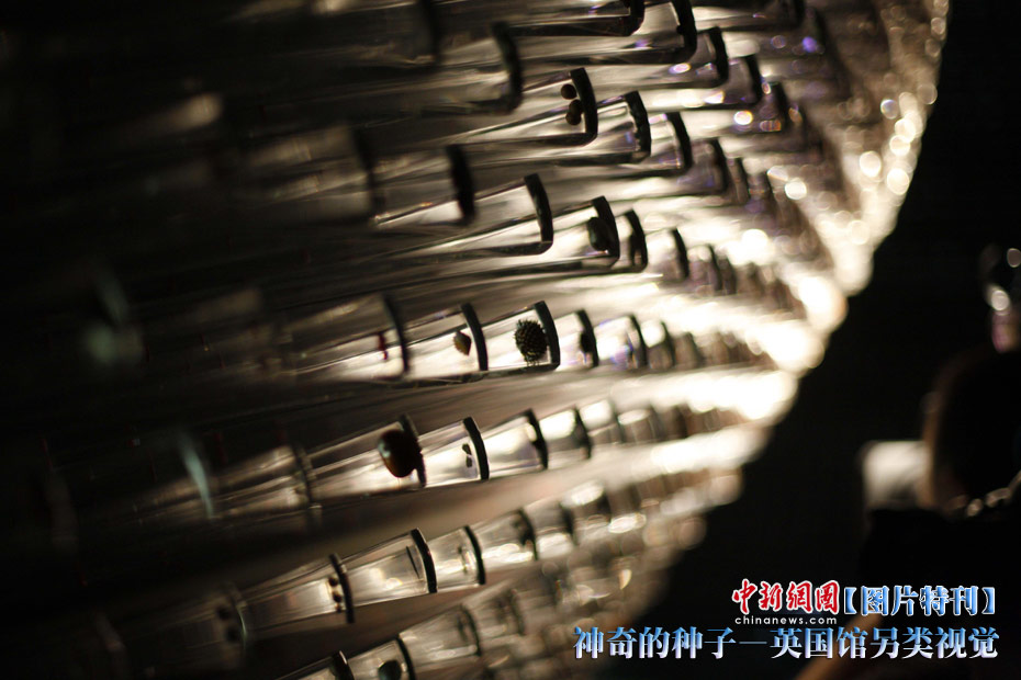 上海世博園開園才數日,自號“種子圣殿”的英國館已成人氣最旺場館之一。該館由6萬根亞克力桿巧妙構成,隨風搖動,頗為新奇。其每根桿子里都含有植物種子。中新社記者 盛佳鵬 攝