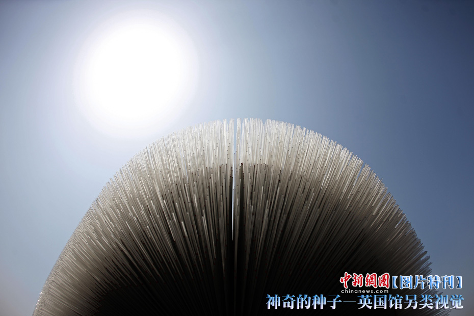 上海世博園開園才數日,自號“種子圣殿”的英國館已成人氣最旺場館之一。該館由6萬根亞克力桿巧妙構成,隨風搖動,頗為新奇。其每根桿子里都含有植物種子。中新社記者 盛佳鵬 攝