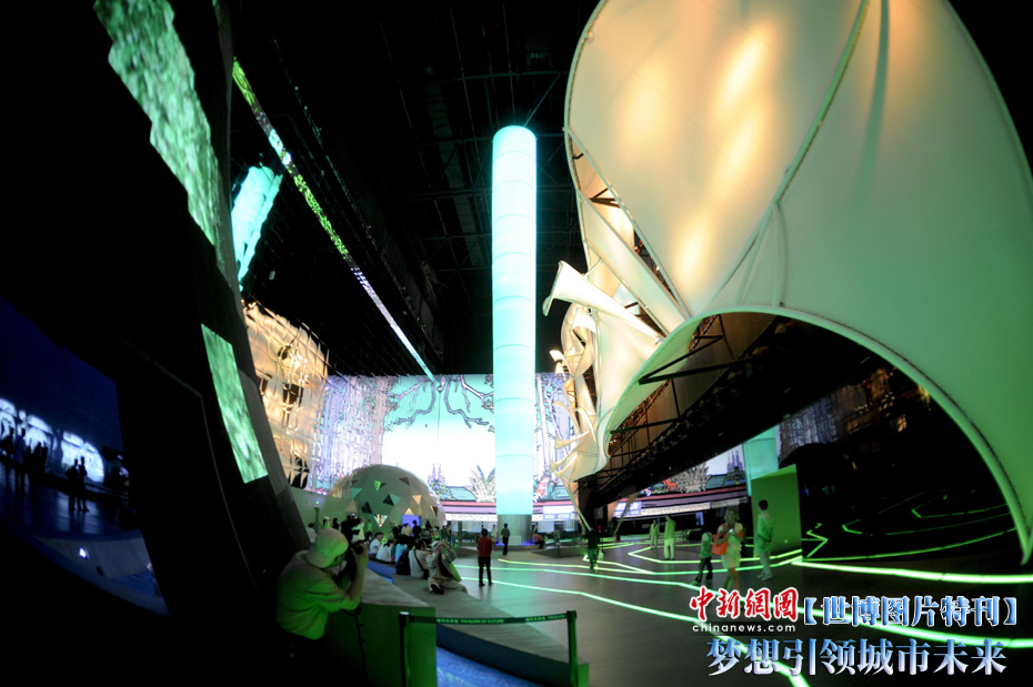 上海世博會城市未來館位于E片區,館內的展示以互動方式開始,邀請參觀者暢想未來的城市,然后運用影片、書籍和雕塑等方式,體現歷史上人們對未來城市的夢想、設計與實踐,表明未來城市建立在今日挑戰的基礎上,并且暢想未來城市的各種可能,闡述推動人類進步永恒不變的精神元素。展望未來城市,一方面人類城市的種種現實、挑戰和危機推動人們在思考中尋找城市的出路,另一方面人類不懈的創新能力和科技的飛速進步也把人們引向不可思議的未來城市。中新社記者 廖攀 攝