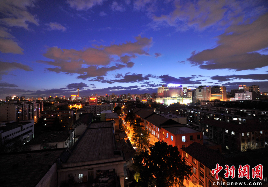 5月5日立夏,京城降雨今晨剛剛結束,霧氣伺機又起。傍晚時分,隨著四級北風的到來,京城天氣逐漸轉晴,霧氣慢慢消散天空彤云密布夜色瑰麗。中新網記者 金碩 攝