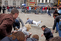 5月6日,幾位穿著艷麗服裝的“藝術家”,走進世博會加拿大館,這是加拿大館的文化推廣內容之一。中新社發 潘索菲 攝