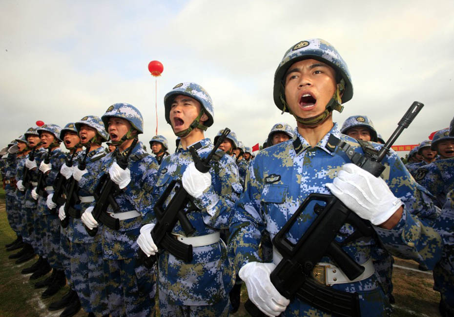 5月5日,海軍陸戰隊員接受檢閱。圖片來源:新華網 查春明攝