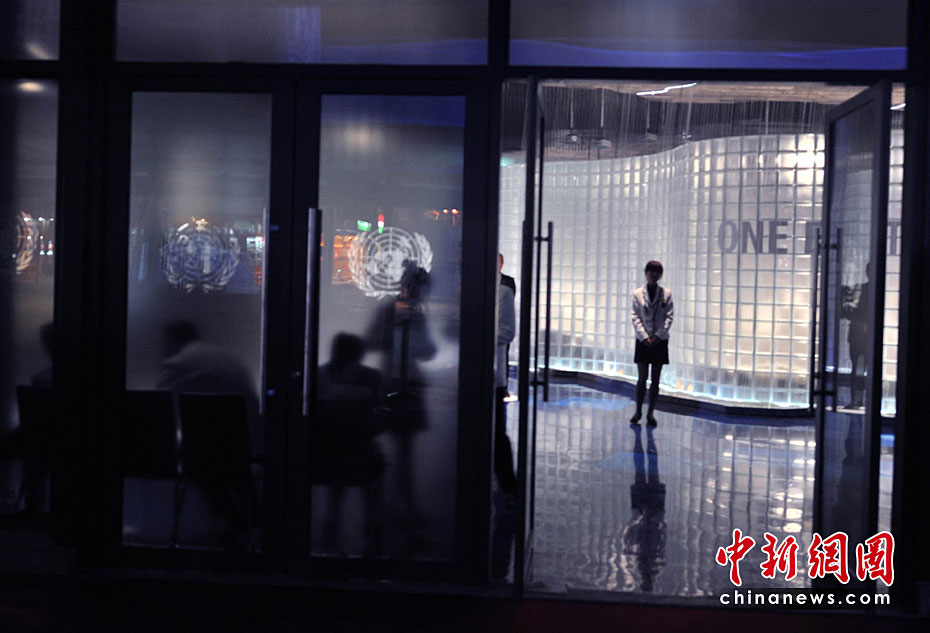 一所藍色的簡樸平房,在5月開園的上海世博會大道邊上,極不顯眼。但是,聯合國聯合館的鮮明會標,特別吸引人。這個展館集中了世界衛生組織、世界銀行和聯合國的兒童基金會、糧農組織、教科文組織等22個機構。圖片來源:中國新聞網 賈國榮 攝