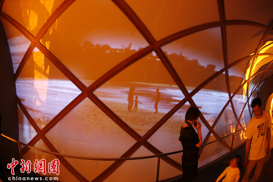 展館內設置“旅行”、“發現”和“暢享”三個活動區,講述這片神奇大陸上奇異的物種、豐富的文化和宜居的城市,繽紛的色彩和充滿創意智慧的展示讓人目眩神迷。中新社記者 盛佳鵬 攝