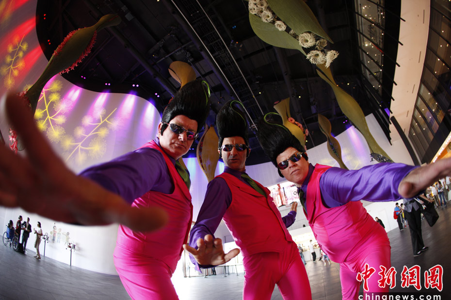 澳大利亞頂級街頭表演劇團“鉻合金(Chrome)”在澳大利亞國家館閃亮登場,他們以幽默風趣的表演、優美動聽的音樂和與觀眾之間的巧妙互動,吸引了參觀者的注意力。中新社記者 盛佳鵬 攝