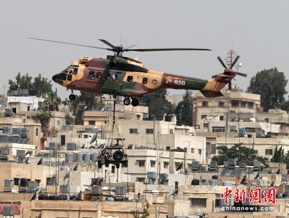 5月11日,約旦特種部隊在安曼空軍基地附近舉行演習,為特種作戰部隊展覽會(SOFEX)開幕式助興。該展覽會為期4天,展覽主題包括國家安全及反恐措施。圖片來源:中國新聞網