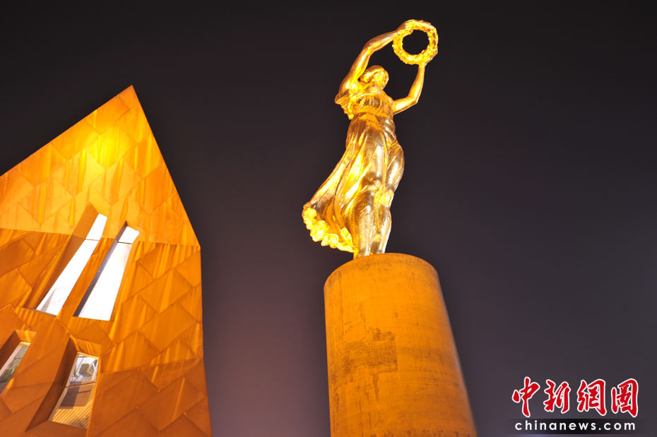 圖為盧森堡館外的金色少女。 中新網記者 王紅綱 攝