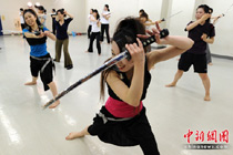 白領女性練武士刀減壓