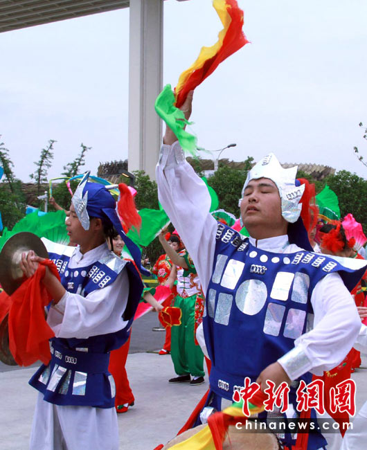 5月14日,上海世博會“河北活動周”在寶鋼大舞臺啟幕,戰鼓、旱船、拉花、草編、石雕、年畫、雜技、皮影戲……燕趙大地的傳統絕活一一登場。“河北活動周”自14日持續至18日,將圍繞“京畿神韻”的主線,向世界展示河北省的經濟和藝術魅力,是繼直轄市北京、天津之后,第一個由省份在世博會上舉辦的活動周。中新社記者 殷春永 攝