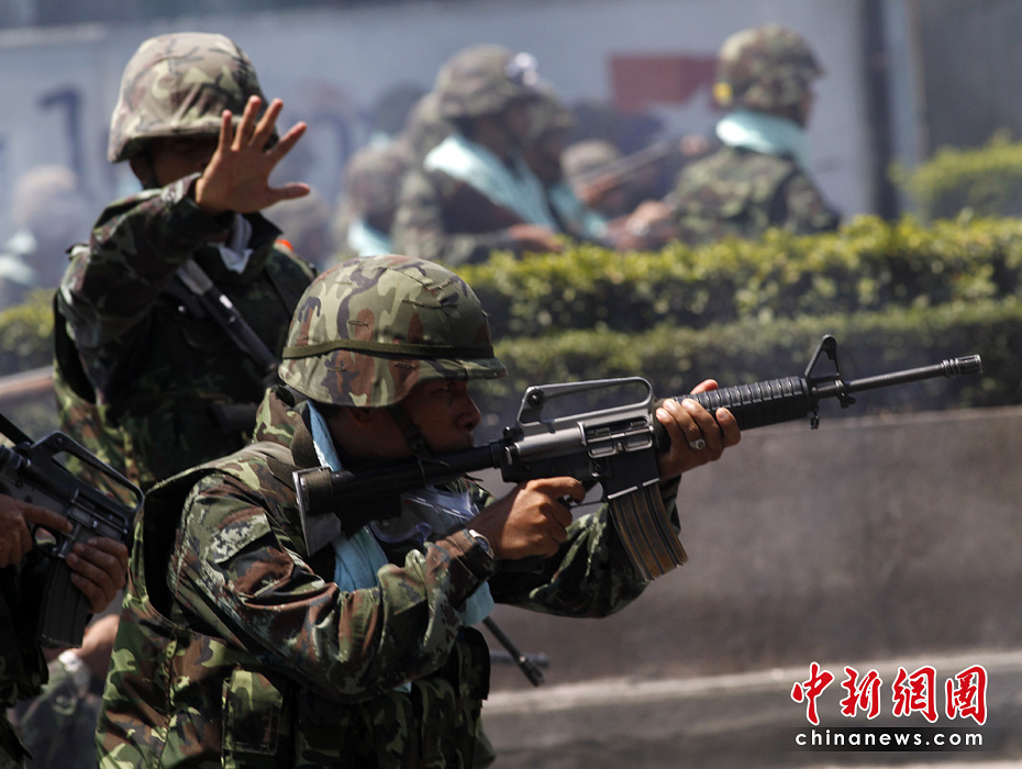 泰國政府軍和反政府示威者5月14日深夜在曼谷爆發(fā)嚴(yán)重暴力沖突。曼谷緊急醫(yī)療機構(gòu)15日稱,截止當(dāng)?shù)貢r間早晨6時,沖突已導(dǎo)致16人死亡,至少141受傷,傷者中包括3名外國人。圖片來源:中國新聞網(wǎng)