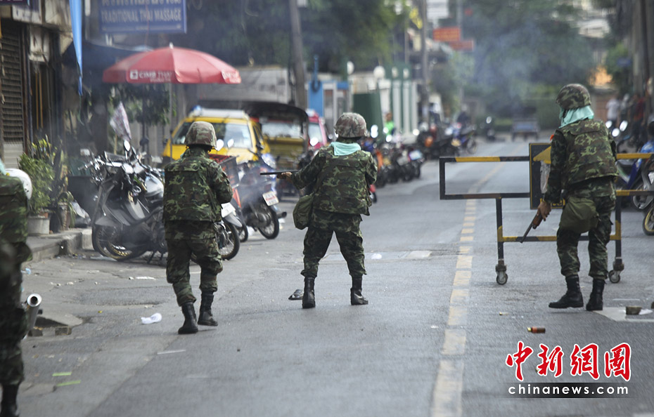 泰國(guó)政府軍和反政府示威者5月14日深夜在曼谷爆發(fā)嚴(yán)重暴力沖突。曼谷緊急醫(yī)療機(jī)構(gòu)15日稱,截止當(dāng)?shù)貢r(shí)間早晨6時(shí),沖突已導(dǎo)致16人死亡,至少141受傷,傷者中包括3名外國(guó)人。圖片來源:中國(guó)新聞網(wǎng)