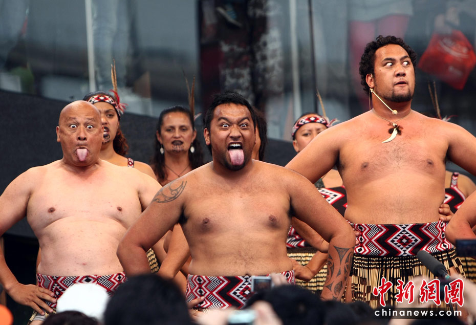 世博趣圖:游客赤膊上陣學跳毛利舞