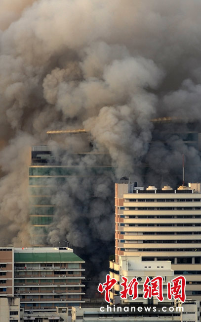 泰國軍方19日清場,希望將陷入內戰邊緣的曼谷拯救出來,雖然紅衫軍節節敗退,但有激進分子未肯罷休,四處放火,電視臺、股票交易所、電力公司、幾間銀行、商場戲院都遭殃,商場和便利店亦成為搶掠目標。據報曼谷有27處地方起火,泰國最大的商場Central World、Siam Square和Siam Paragon三大購物中心被縱火,其中Central World燒通頂,據報快將倒塌。