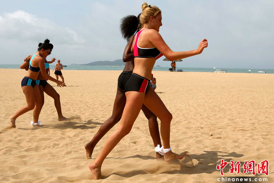 5月22日,一場(chǎng)沙灘趣味運(yùn)動(dòng)會(huì)在三亞海邊舉行,全球64位比基尼佳麗悉數(shù)登場(chǎng),展現(xiàn)自己的運(yùn)動(dòng)天賦。中新社發(fā) 富田 攝