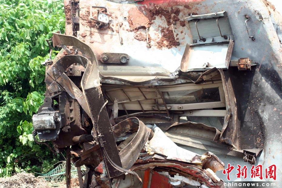 中新網東鄉5月23日電(艾永全 何柳斌 劉占昆)23日下午14時,距離滬昆鐵路客運列車脫線事發已經12小時,武警、消防、醫護、交警、特警仍在事故現場緊急救援。  艾永全 攝
