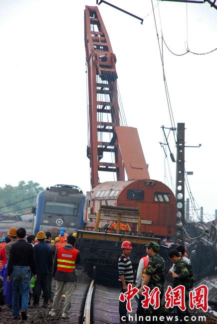 中新網東鄉5月23日電(艾永全 何柳斌 劉占昆)23日下午14時,距離滬昆鐵路客運列車脫線事發已經12小時,武警、消防、醫護、交警、特警仍在事故現場緊急救援。 劉占昆 攝