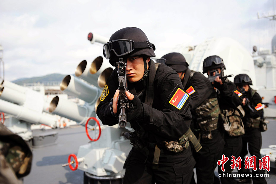 3月2日,特戰(zhàn)隊員在168艦上一絲不茍地對各種方案預(yù)案進行演練。他們說,不給海盜有任何機會。江山 攝