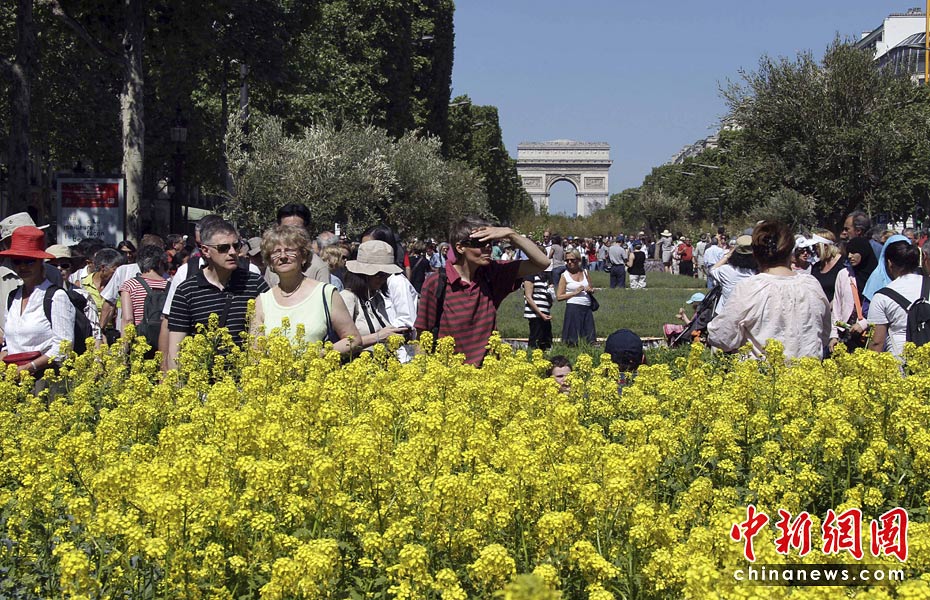 5月24日,法國總統薩科齊和妻子布呂尼參觀在法國巴黎舉行的“自然首都”展。該項展覽是由街頭藝術家加德·魏爾聯手法國“青年農民協會”和林業協會共同發起的的,將百余種農作物、樹木和動物“齊聚”法國首都巴黎的香榭麗舍大街,令這條“香街”變身“綠色的自然世界”。圖片來源:中國新聞網