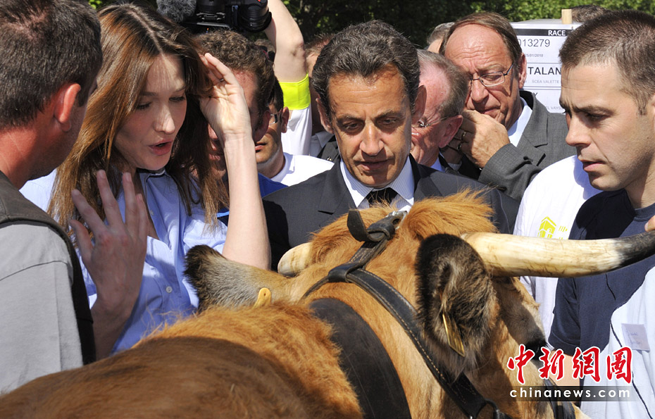 5月24日,法國總統薩科齊和妻子布呂尼參觀在法國巴黎舉行的“自然首都”展。該項展覽是由街頭藝術家加德·魏爾聯手法國“青年農民協會”和林業協會共同發起的的,將百余種農作物、樹木和動物“齊聚”法國首都巴黎的香榭麗舍大街,令這條“香街”變身“綠色的自然世界”。圖片來源:中國新聞網