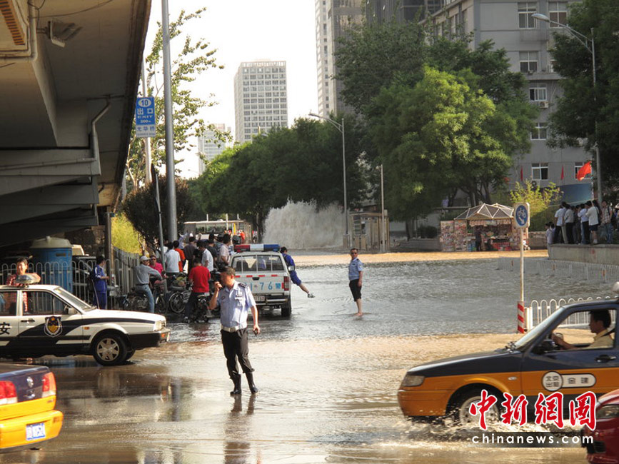 2010年5月25日下午4點(diǎn)半左右,北京京廣橋附近發(fā)生水管爆裂,水柱噴射到兩層樓高,流出的水已成河,造成東三環(huán)嚴(yán)重?fù)矶隆I蜍?攝