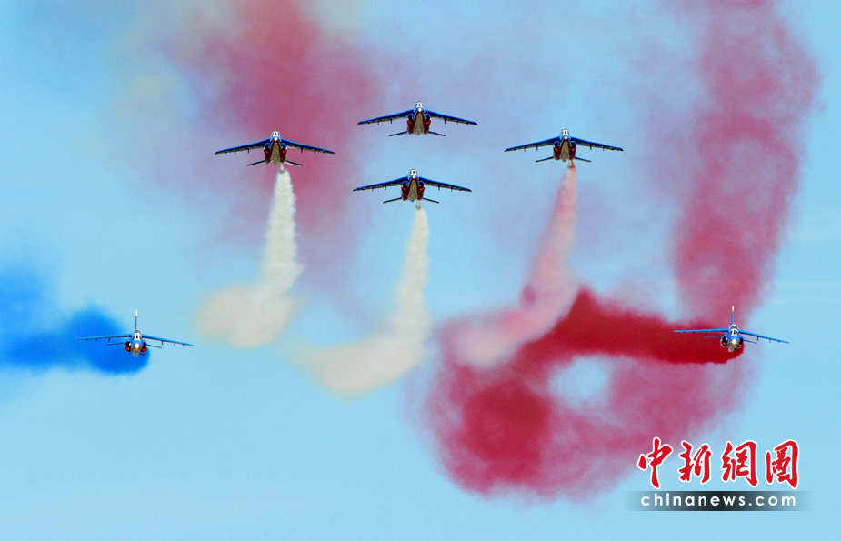 5月25日,法國巡邏兵特技飛行表演隊在普羅旺斯地區進行驚險的飛行表演。
