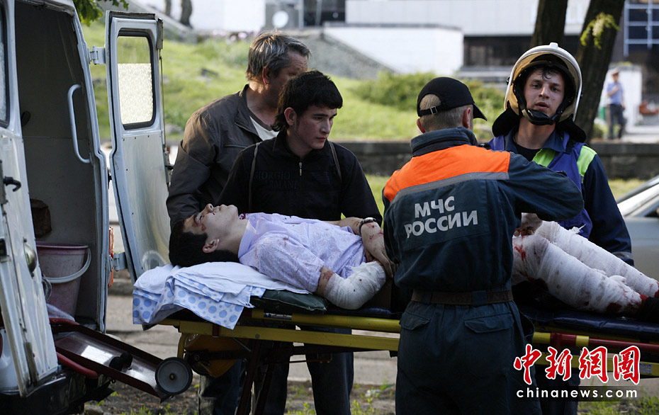 當(dāng)?shù)貢r(shí)間5月26日18時(shí)45分,一不明爆炸物在與斯塔夫羅波爾市體育文化宮毗鄰的一個(gè)建筑附近發(fā)生爆炸,造成至少5人死亡,46人受傷。警方初步判斷,爆炸造成的死傷人員可能是來參加車臣國家歌舞團(tuán)舉行的音樂會(huì)的觀眾。目前爆炸現(xiàn)場已被封鎖,俄聯(lián)邦總檢察院北高加索和南部聯(lián)邦區(qū)偵查機(jī)關(guān)正會(huì)同當(dāng)?shù)鼐胶吐?lián)邦調(diào)查局進(jìn)行現(xiàn)場調(diào)查。圖片來源:中國新聞網(wǎng)