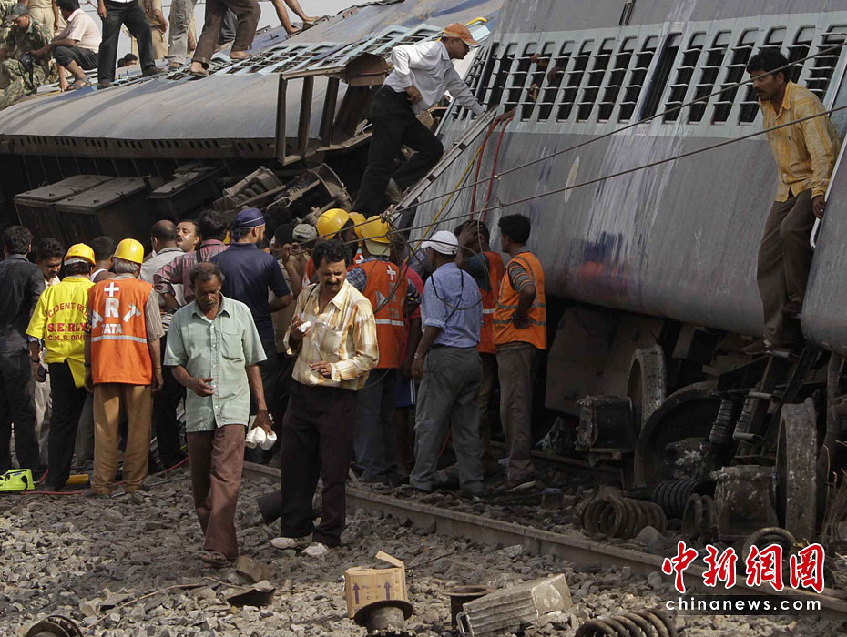 當(dāng)?shù)貢r(shí)間5月28日,印度一列特快列車在東部西孟加拉邦的西米德納布爾遭反政府武裝襲擊脫軌,造成百余人死傷。圖片來源:中國新聞網(wǎng)