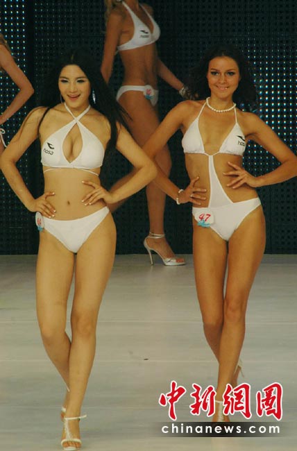 5月29日晚,第35屆國際比基尼小姐全球總決賽在三亞“美麗之冠”落下帷幕,22歲的羅馬尼亞選手Diana Irina Boanca摘得冠軍。總決賽還評選出了四季小姐,18歲的中國選手趙茜獲得“秋季小姐”,澳大利亞、委內瑞拉和拉脫維亞選手分別獲得春、夏、冬季小姐。共有來自世界各地的64位佳麗參加了總決賽的角逐。當晚,佳麗們展示了各自國家或地區特色的民族服飾,用不同的方式展示了不同風格的比基尼“秀”,性感迷人。 中新社記者 尹海明攝