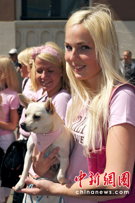 金發女郎集體街頭游行 秀高挑身材