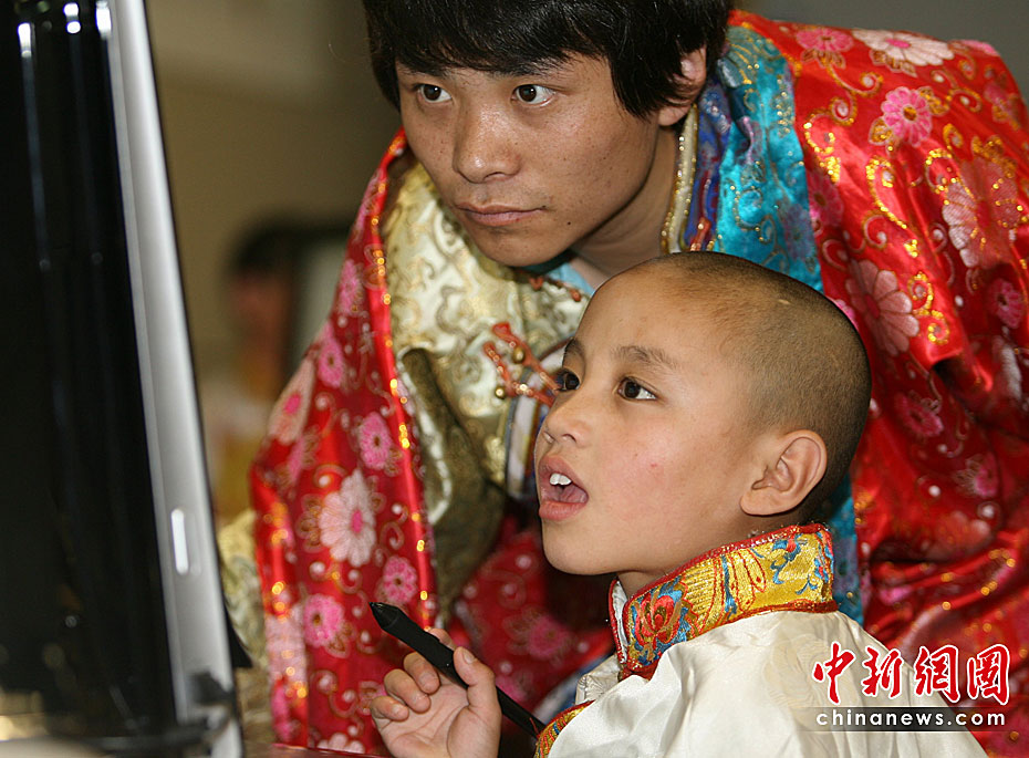 5月31日,玉樹地震孤兒多杰仁青在老師的指導下在北京國家圖書館體驗新開通的少兒數字圖書館,迎接六一兒童節。這批玉樹孤兒共23名,于5月23日抵京,由“中華少年兒童慈善救助基金會”安置。在北京度過“六一”后,他們還將休整3個月,待災區情況穩定后,中華兒慈會將與當地的民政部門協商,在征求孤兒本人意愿的基礎上,或讓他們返回原地上學,或者在內地長期居住。基金會將一直支持他們到18歲成人。中新社發 蘇丹 攝