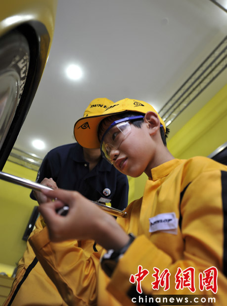 圖為孩子在體驗賽車場上的技師。 中新網記者 王紅綱 攝