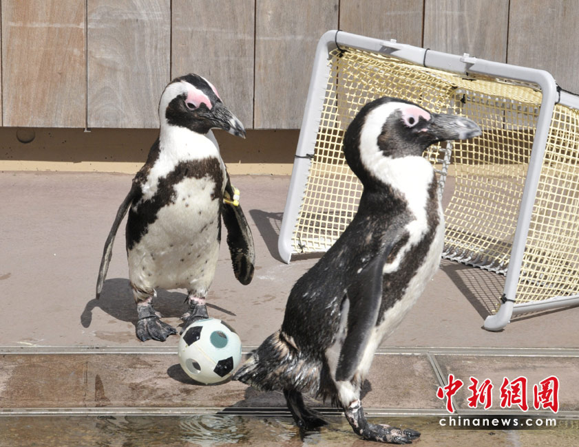 6月1日,在日本東京一家海洋館里,幾只企鵝“披掛上陣”,進(jìn)行了一場(chǎng)別開生面的足球賽,迎接世界杯。