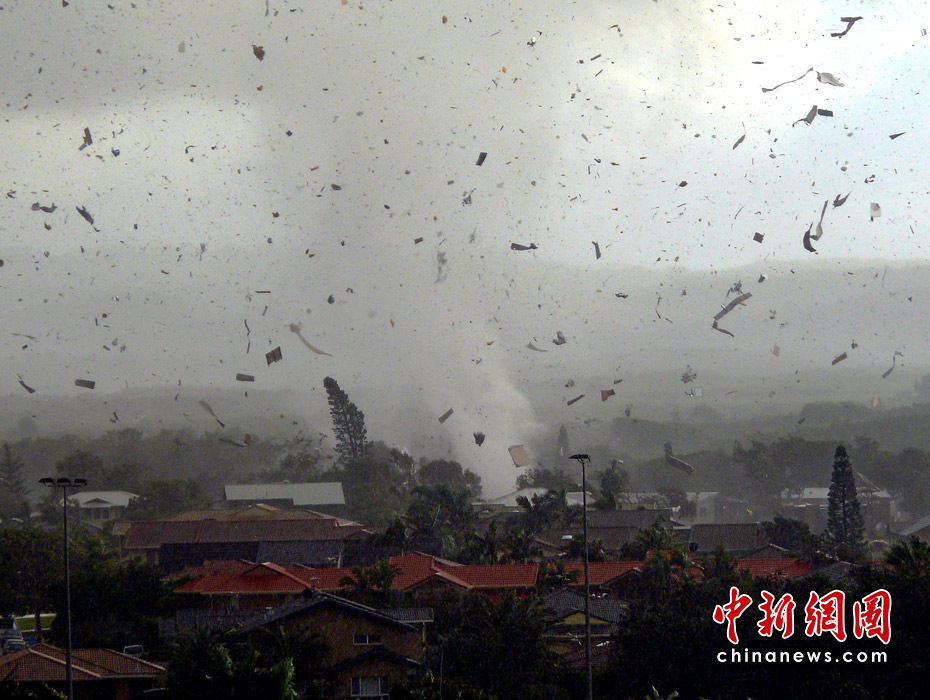 6月3日,澳大利亞新南威爾士州海濱城鎮倫諾克斯黑德遭到龍卷風襲擊,大樹被連根拔起,屋頂被掀翻,重型拖車也被拋到半空中。數千所民居停電。一共有12所房屋在這場龍卷風中被摧毀,6人受傷,傷勢不重。所幸沒有人員死亡的報告。圖片來源:中國新聞網