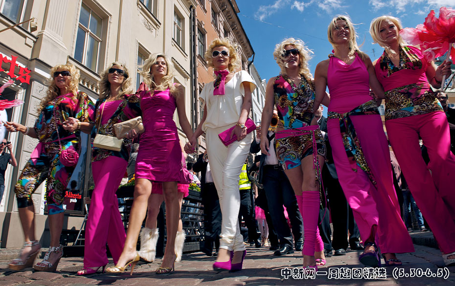 5月29日,在拉脫維亞首都里加,眾多金發美女身著艷麗裝扮在街頭游行,大秀嫵媚身材。圖片來源:中國新聞網>>點擊觀看詳細內容