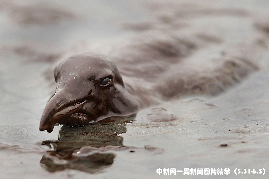 周四(3日),一只海鳥因墨西哥灣漏油而身披油污。